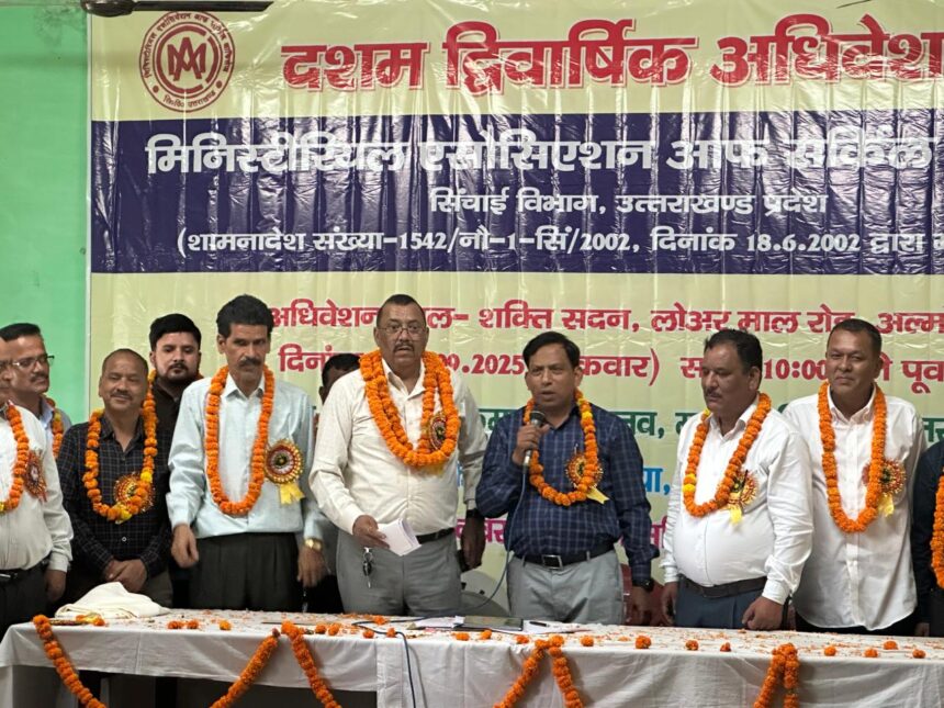 Almora. The 10th Provincial Convention of the Ministerial Association of Circle Offices, Irrigation Department, Uttarakhand was successfully held on 12 September 2025 at Shakti Sadan, Almora. The first session was conducted in a dignified atmosphere with Mr. Sanjeev Kumar Srivastava, Chief Engineer Almora as the Chief Guest. Mr. Gokaran Singh, Chief Mechanical Engineer, was represented by Mrs. Ritika Pal, Executive Engineer, while Mr. Javed Anwar, Superintending Engineer, attended as the Special Guest.