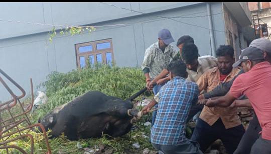 स्थानीय लोगों ने बताया कि संकरी गली में सांड का शव होने से आवागमन पूरी तरह बाधित हो गया था। गली से शव को बाहर निकालना नगर निगम टीम के लिए बड़ी चुनौती बन गया। इस कार्य में नगर निगम के बसंत बल्लभ पांडे व उनकी टीम ने सहयोग किया। घंटों की मशक्कत के बाद मृत सांड को गली से निकालकर मार्केट तक पहुँचाया गया।