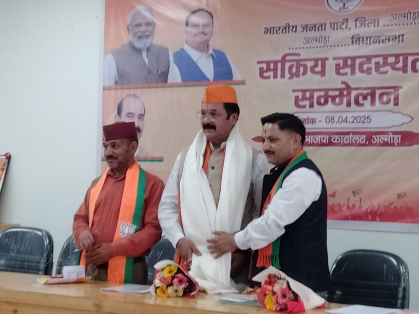 अल्मोड़ा। भारतीय जनता पार्टी (भा.ज.पा.) के कार्यालय पाताल देवी में एक सक्रिय सदस्यता सम्मेलन आयोजित किया गया। यह कार्यक्रम जिला अध्यक्ष महेश नयाल की अध्यक्षता में आयोजित हुआ। कार्यक्रम में पूर्व विधायक कैलाश शर्मा, पूर्व विधायक रघुनाथ सिंह चौहान, अल्मोड़ा महापौर अजय बर्मा, प्रदेश कार्यकारिणी सदस्य पूर्व राज्य मंत्री गोविंद पिल्खावाल, दुग्ध संघ अध्यक्ष गिरीश खोलिया समेत अन्य प्रमुख नेता उपस्थित रहे।