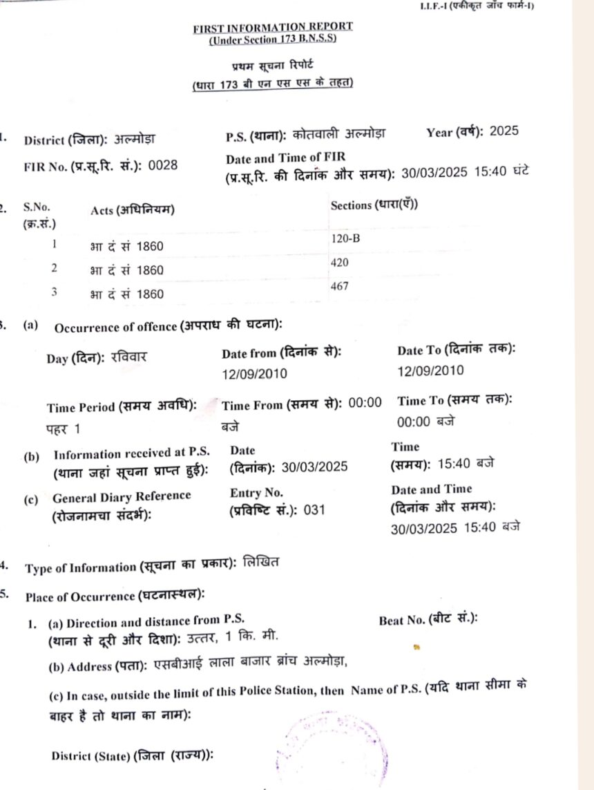 ज्ञापन के अनुसार, ग्राम पंचायत दुगालखोला की पूर्व प्रधान की फर्जी मोहर का उपयोग कर ऋण लेने का प्रयास किया गया। बहादुर नेगी (पुत्र बिशन सिंह) और दिनेश नेगी (पुत्र चन्दन सिंह) ने एसबीआई लाला बाजार ब्रांच, अल्मोड़ा में एनएलएम योजना के तहत प्रॉपर्टी मोर्टगेज से संबंधित दस्तावेज जमा किए थे। बैंक को दस्तावेजों में फर्जी मोहर का संदेह हुआ, जिसके बाद जांच की गई। जांच में पुष्टि हुई कि इन जाली दस्तावेजों के आधार पर ऋण प्राप्त करने की कोशिश की गई थी।