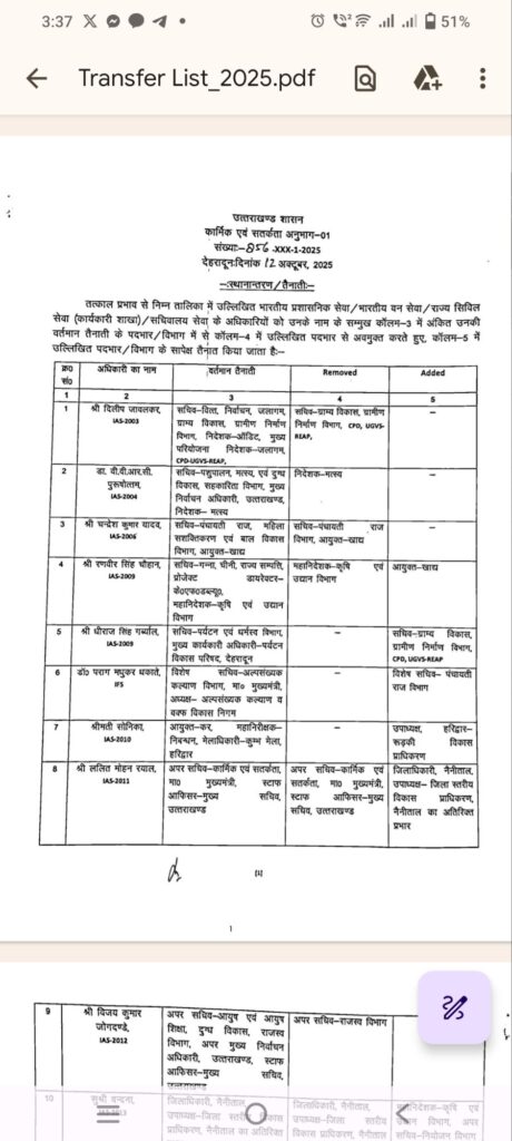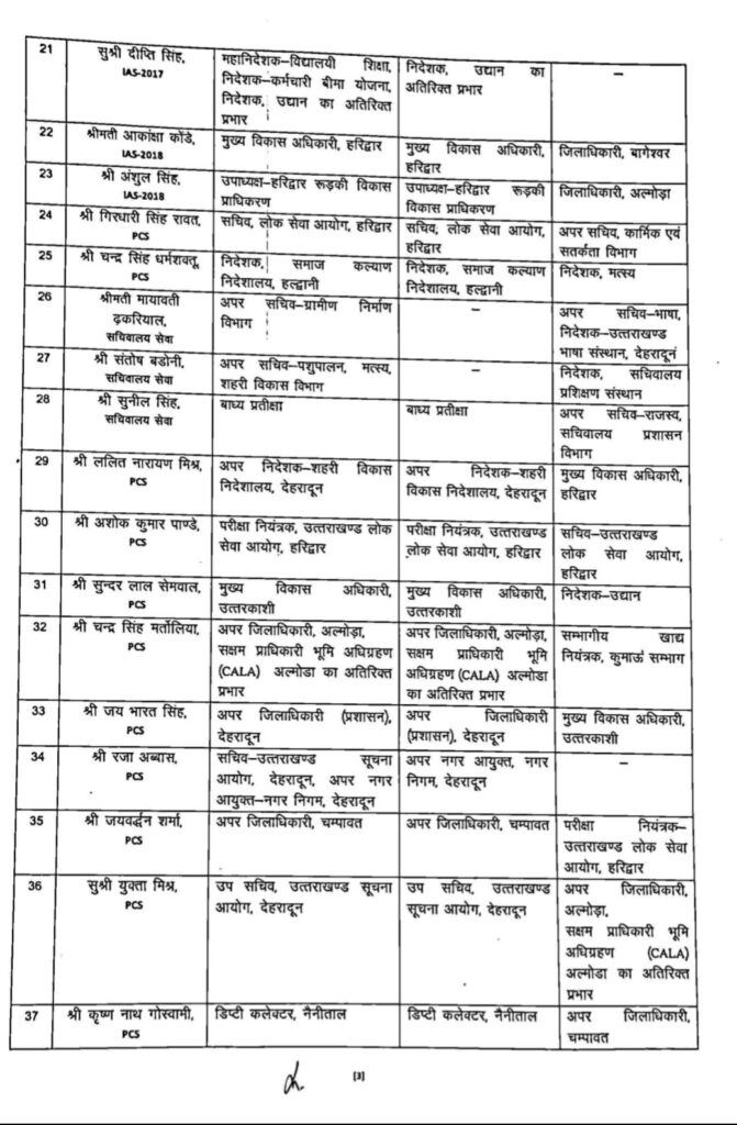 अंशुल सिंह होगे अब अल्मोड़ा के जिलाधिकारी, सरकार ने प्रदेश के अधिकारियों के स्थानांतरण किए गए है देखे सूची