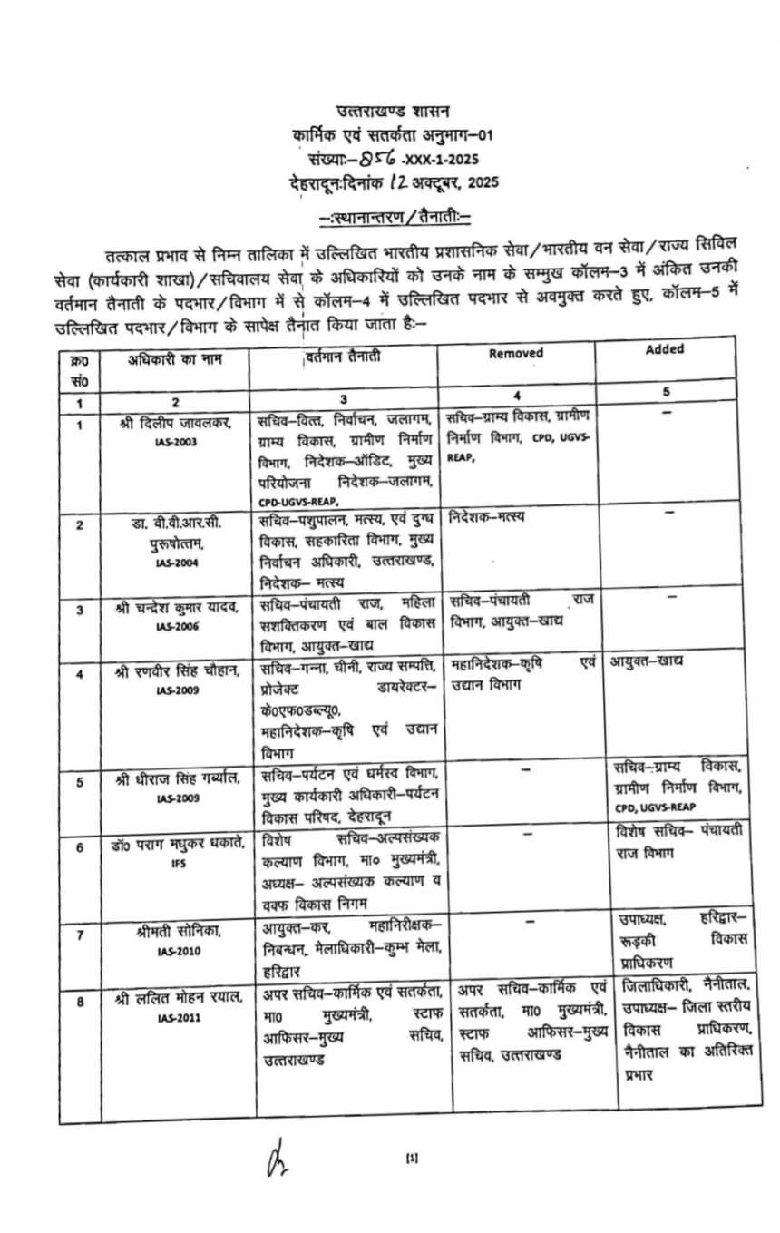 अंशुल सिंह होगे अब अल्मोड़ा के जिलाधिकारी, सरकार ने प्रदेश के अधिकारियों के स्थानांतरण किए गए है देखे सूची