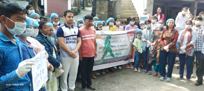 Kasar Devi (Almora): As part of the 45-day Voice for Green Earth campaign, the youth associated with Uttarakhand Youth Network (UYN) organized an awareness rally and green walk in the Kasar Devi area on Sunday. During the event, the young participants collected plastic waste, bottles, and other non-biodegradable materials scattered across the forest and handed them over to the district council’s waste collection vehicle.