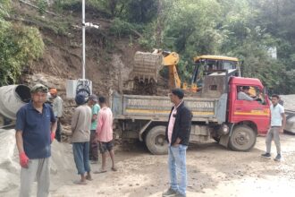 शैल बाईपास (नेशनल हाईवे) में लैंडस्लाइड से प्रभावित क्षेत्र में शुरू हुआ मरम्मत कार्य