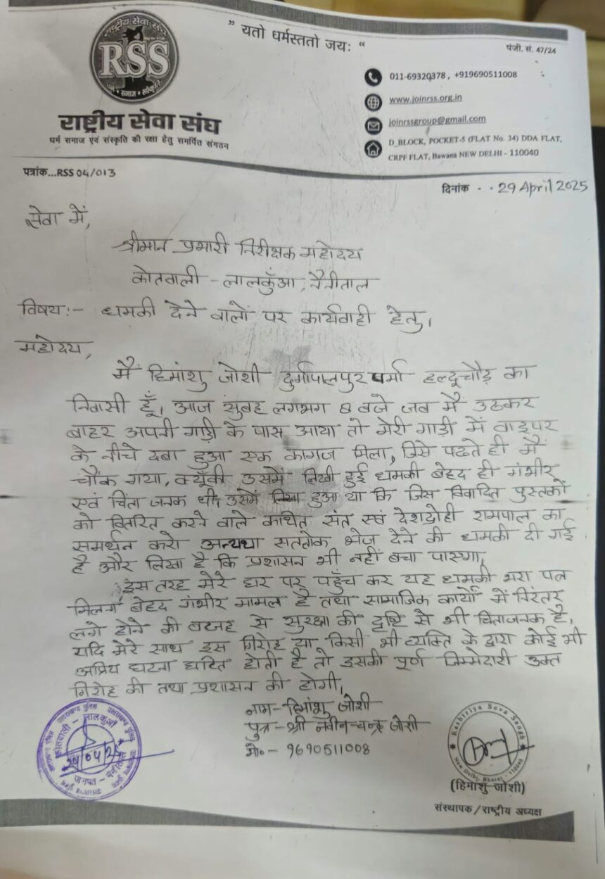 लालकुआं, राष्ट्रीय सेवा संघ के संस्थापक एवं राष्ट्रीय अध्यक्ष हिमांशु जोशी को…