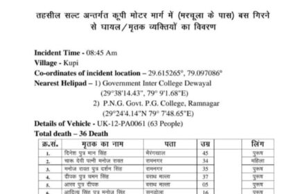अल्मोड़ा: कूपी गाँव में वाहन दुर्घटना में मृतकों के परिजनों को राहत राशि प्रदान की जाएगी