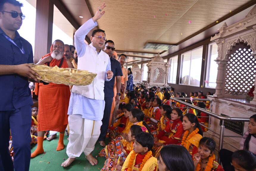 अल्मोड़ा — मुख्यमंत्री पुष्कर सिंह धामी ने अल्मोड़ा स्थित डोल आश्रम पहुंचकर श्री कल्याणिका हिमालय देवस्थानम न्यास द्वारा आयोजित श्री पीठम स्थापना महोत्सव में भाग लिया। इस दौरान मुख्यमंत्री ने 1100 कन्याओं का पूजन, मां राजेश्वरी का अभिषेक तथा पूजा-अर्चना कर देश व प्रदेश की सुख-समृद्धि की कामना की।