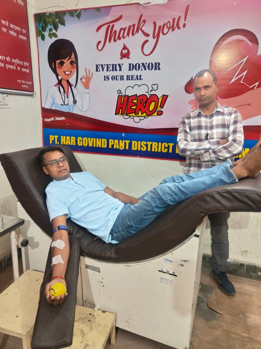 नगर निगम अल्मोड़ा के पार्षद गुंजन सिंह चम्याल ने मानवता की मिसाल पेश करते हुए एक 50 वर्षीय जरूरतमंद व्यक्ति को ओ पॉजिटिव रक्तदान कर उसकी जान बचाई। जानकारी के अनुसार, उक्त मरीज की तबीयत अचानक बिगड़ गई थी और उसे तत्काल रक्त की आवश्यकता थी। मरीज का रक्त समूह ओ पॉजिटिव था, लेकिन समय पर रक्त की उपलब्धता न हो पाने के कारण परिजनों में चिंता का माहौल था।