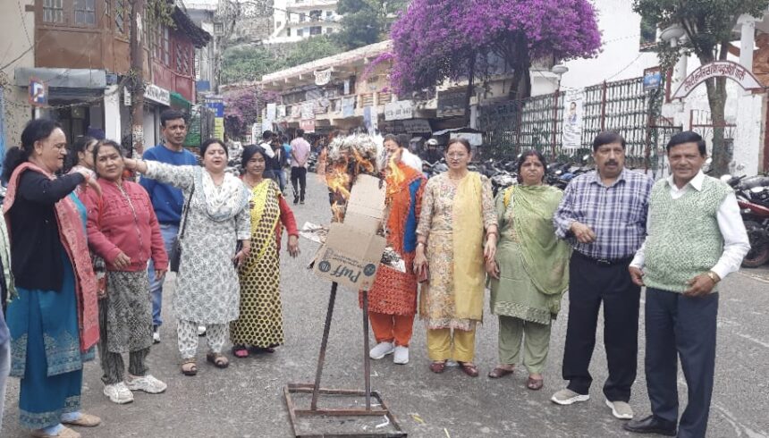 अल्मोड़ा: प्रदेश में महिलाओं और बालिकाओं के प्रति बढ़ते अपराधों के विरोध में महिला कांग्रेस अल्मोड़ा ने सोमवार को स्थानीय चौघानपाटा में जोरदार प्रदर्शन किया और सरकार का पुतला दहन किया। यह विरोध प्रदर्शन महिला कांग्रेस जिलाध्यक्ष राधा बिष्ट के नेतृत्व में आयोजित किया गया।