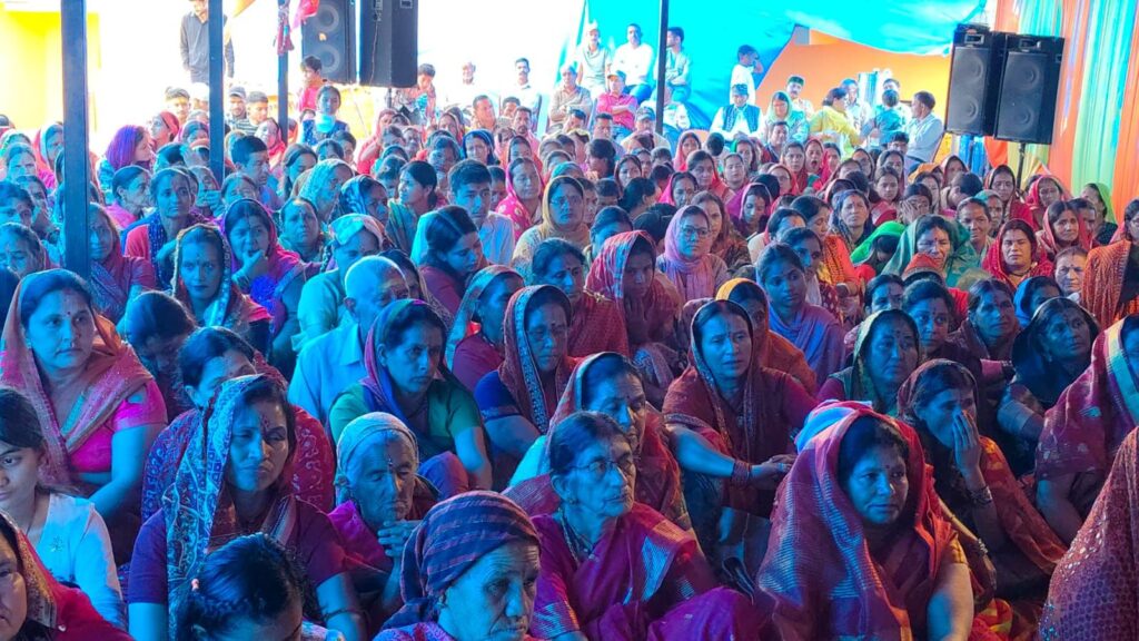 Devotees from nearby villages as well as distant areas are attending the daily sessions in large numbers. The atmosphere around the temple has turned devotional with chants, bhajans, and the resonating vibrations of the Goddess’s glory.