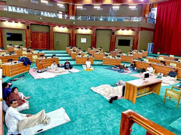 Gairsain, Uttarakhand – The first day of the Monsoon Session of the Uttarakhand Assembly was marked by intense uproar and political unrest. After a day-long protest, Congress MLAs spent the entire night inside the Assembly hall, wrapped in blankets. Leader of Opposition Yashpal Arya, along with other Congress legislators, was seen sitting and lying on the floor of the House.