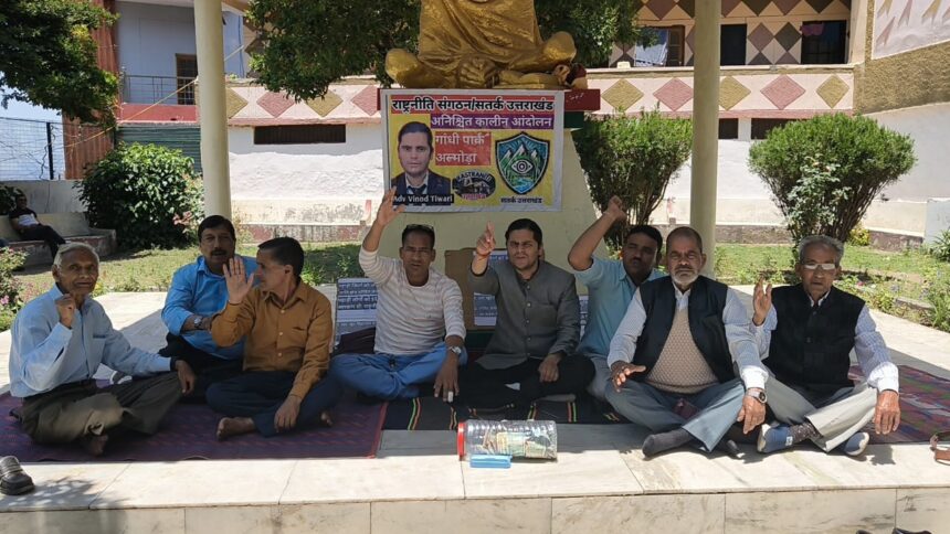 Almora – The ongoing protest organized under the banner of Rashtraniti Sangathan at Gandhi Park, Almora, entered its 29th day today. Following a complaint filed with the Prime Minister’s Office and a symbolic begging campaign launched across urban and rural areas, the local administration has finally taken notice. Chief Development Officer (CDO) contacted the protestors via phone and assured that steps would soon be taken to resolve their issues.