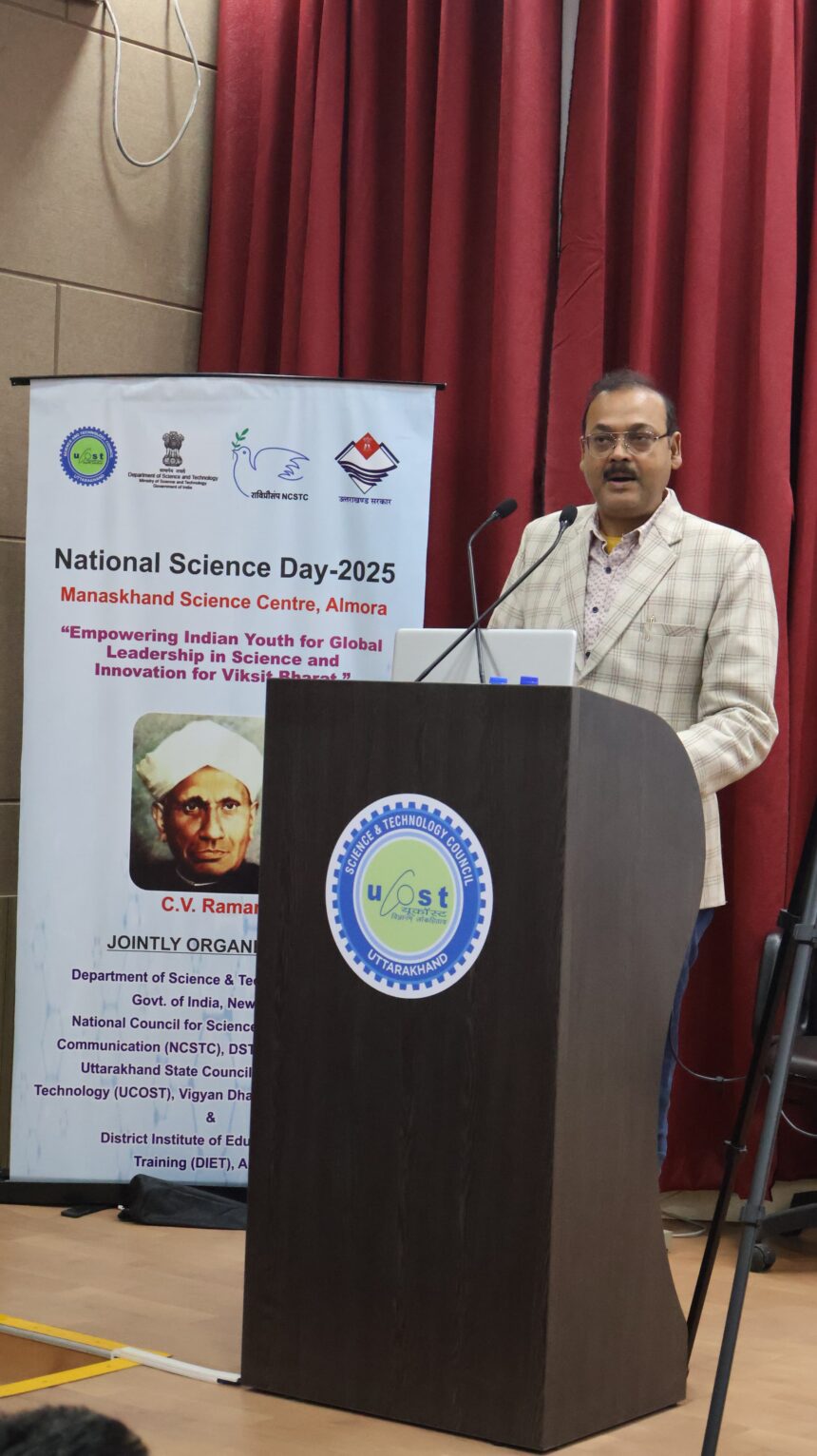 अल्मोड़ा: राष्ट्रीय विज्ञान दिवस के अवसर पर मानसखंड विज्ञान केंद्र, अल्मोड़ा में एक भव्य समारोह का आयोजन किया गया। इस वर्ष के कार्यक्रम का मुख्य चिंतन विषय था “विकसित भारत के लिए विज्ञान और नवाचार में वैश्विक नेतृत्व के लिए भारतीय युवाओं को सशक्त बनाना।” कार्यक्रम के मुख्य अतिथि अलोक कुमार पांडे, जिलाधिकारी, अल्मोड़ा थे, जबकि केंद्र में कार्यक्रम की अध्यक्षता मेयर अजय वर्मा द्वारा की गई।
