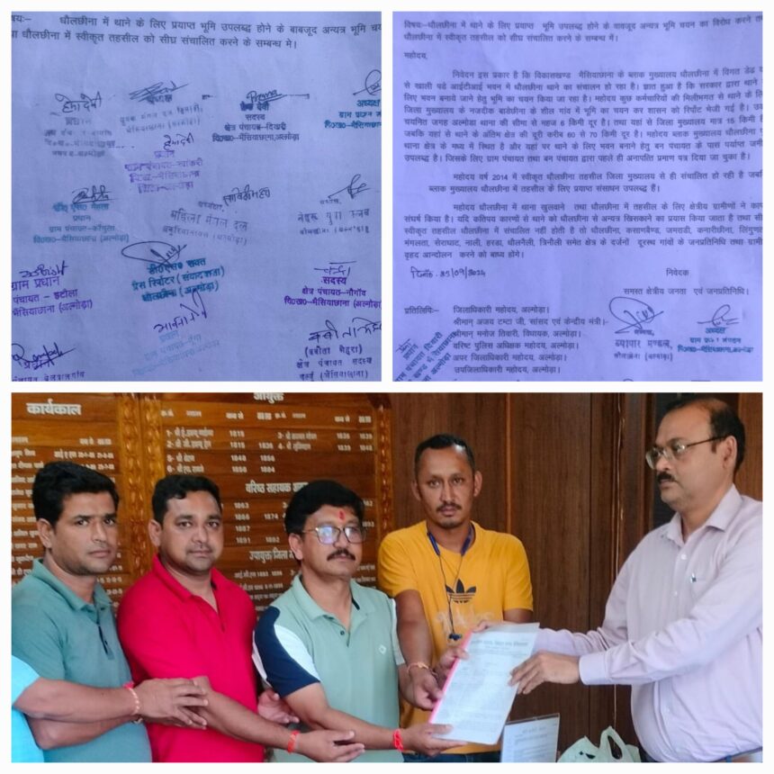 Memorandum – धौलछीना थाने  का भवन धौलछीना ब्लॉक मुख्यालय में ही बनाया जाए, तहसील का हो शीघ्र संचालन – क्षेत्रीय  जनप्रतिनिधि