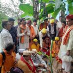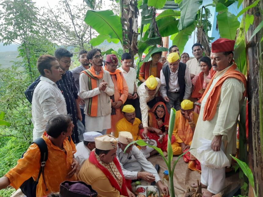 Almora. As part of the preparations for the historic Nanda Devi Fair, a symbol of faith, tradition, and folk culture, the Nanda Devi Mela Committee, Raj Purohit, and hundreds of devotees reached Dulagaon Relakot on Friday. Here, the unique and age-old ritual of Kadli Tree Invitation was performed with great reverence. The devotees’ procession, which started from the Nanda Devi Temple premises with chants of Maa Nanda–Sunanda, created an atmosphere of devotion along the way. Villagers welcomed the procession with traditional dhol-damau beats.
