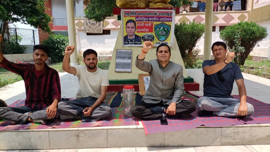 Reading: Public Movement Led by Advocate Vinod Chandra Tiwari Enters 34th Day at Gandhi Park, Almora
