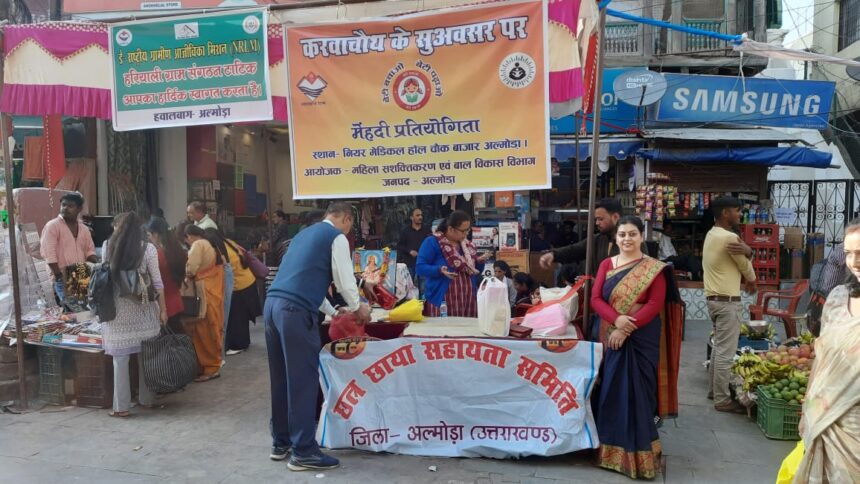 अल्मोड़ा शहर में महिला सशक्तीकरण एवं बाल विकास विभाग के अंतर्गत बेटी बचाओ, बेटी पढ़ाओ थीम पर आयोजित मेंहदी प्रतियोगिता का आयोजन बड़े धूमधाम से किया गया। जिलाधिकारी अल्मोड़ा के निर्देशन में, यह कार्यक्रम शहर के पांच प्रमुख स्थलों—धारानौला, नंदा देवी मंदिर परिसर, खत्याड़ी, चौघानपाटा और चौक बाजार—पर आयोजित किया गया। इस पहल का मुख्य उद्देश्य महिलाओं और बालिकाओं को सशक्त करना और उन्हें अपनी कला प्रदर्शित करने के लिए एक मंच प्रदान करना था।