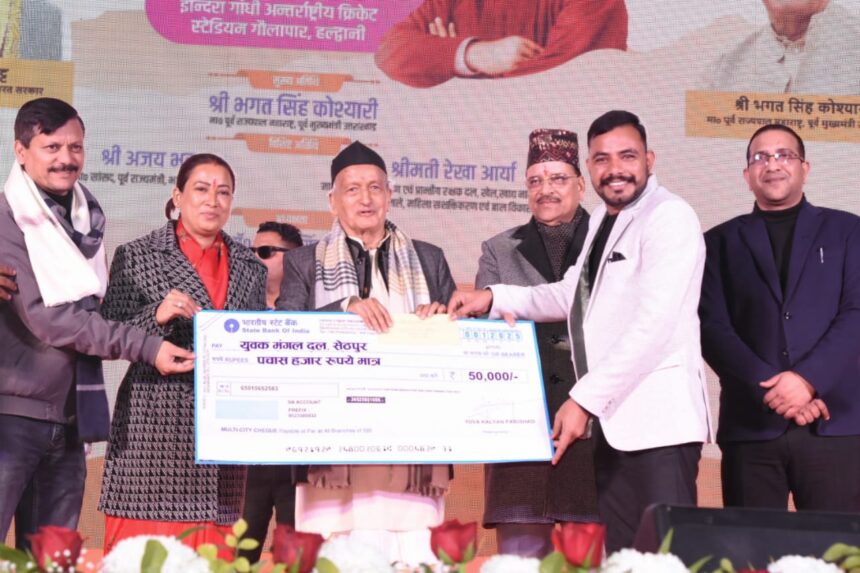 हल्द्वानी : हल्द्वानी के गौलापार खेल परिसर में युवा दिवस के अवसर पर आयोजित कार्यक्रम में युवा उत्साह का शानदार प्रदर्शन देखने को मिला। इस दौरान राज्य के विभिन्न युवा मंगल दलों को सम्मानित किया गया, और राष्ट्रीय खेलों में रजिस्ट्रेशन करने वाले वॉलिंटियर्स को प्रमाण पत्र वितरित किए गए।