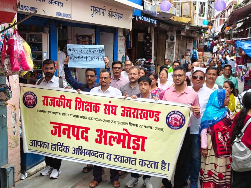 Almora. On the occasion of Teachers’ Day, a large number of government school teachers staged a silent rally in the district headquarters on Monday under the banner of the Government Teachers’ Association, voicing their long-pending demands.