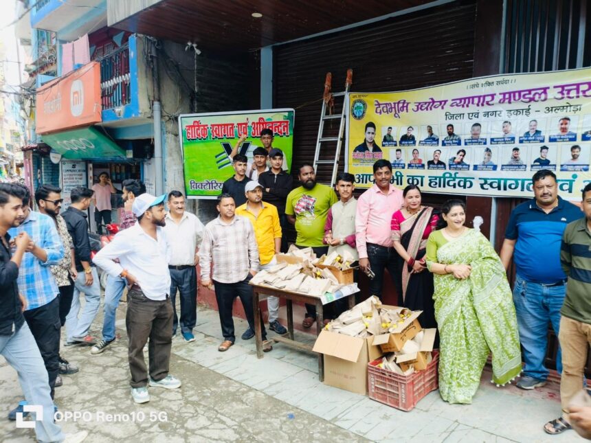 अल्मोड़ा। देवभूमि उत्तराखण्ड की सांस्कृतिक राजधानी अल्मोड़ा में आज से शुरू हुए ऐतिहासिक माँ नन्दा देवी मेला 2025 की सांस्कृतिक शोभायात्रा का नगर के मुख्य बाजार में भव्य स्वागत किया गया। स्वागत का आयोजन देवभूमि उद्योग व्यापार मंडल अल्मोड़ा, धर्म जागरण समन्वय अल्मोड़ा एवं विक्टोरिया क्लब अल्मोड़ा द्वारा विगत वर्षों की भाँति इस वर्ष भी किया गया। शोभायात्रा में शामिल श्रद्धालुओं व कलाकारों का सूक्ष्म जलपान कराकर अभिनंदन किया गया।