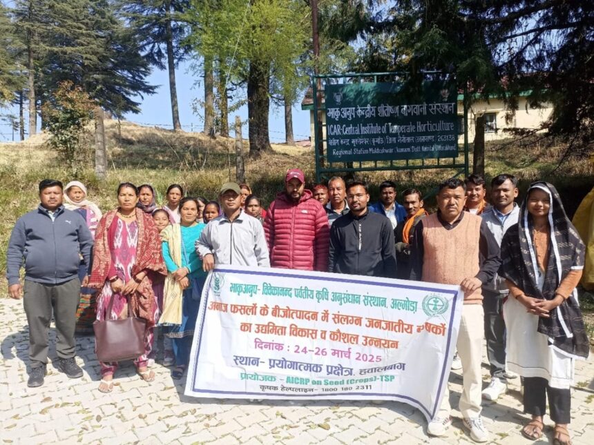 भाकृअनुप-विवेकानंद पर्वतीय कृषि अनुसंधान संस्थान, हवालबाग, अल्मोड़ा ने 24 से 26 मार्च 2025 तक तीन दिवसीय प्रशिक्षण कार्यक्रम आयोजित किया, जिसका उद्देश्य अनाज फसलों के बीज उत्पादन में संलग्न जनजातीय किसानों के उद्यमिता विकास और कौशल उन्नयन को बढ़ावा देना था। यह कार्यक्रम ए0आई0सी0आर0पी0 बीज (फसल)- जनजातीय उप योजना के तहत आयोजित किया गया था। प्रशिक्षण में ऊधम सिंह नगर जिले के सितारगंज क्षेत्र के 31 जनजातीय किसानों (17 पुरुष और 14 महिलाएँ) ने भाग लिया।